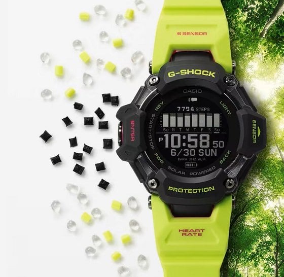 Kalp atış hızı monitörü ve GPS özelliğine sahip, birden fazla spor aktivitesine uygun G-SHOCK saatlerinden oluşan G-SQUAD GBD-H2000 ile sınırlarınızı zorlayın. Bu saatler, her türlü antrenmanı takip etmek için çeşitli işlevlerle birlikte sunulur. Optik sensörle kalp atış hızınızı ölçün; adımlarınızı saymak için ivmeölçeri kullanın; kulaçları ve dönüşleri algılayan jiroskopla yüzme aktivitelerinizi bir üst seviyeye çıkarın. Ayrıca yönü, yüksekliği/atmosfer basıncını ve sıcaklığı algılayan sensörler, yaptığınız her aktivitede size yardımcı olur. Antrenmanları ve uyku sonrası güç toplama durumunu analiz etmek için Polar akıllı saat kitaplığına da dokunabilirsiniz. İster koşu ister bisiklet sürme ister yüzme olsun; bu saatler sevdiğiniz her spor için tam donanımlı temel ekipmanlardır. Gerçek fitness ve sağlık, çevreye de duyarlı olmalıdır. Bu nedenle kordonu, mısır bazlı biyokütle plastiklerden ürettik. Yenilenebilir organik materyallerden üretilen biyokütle plastikler; çevresel etkiyi azaltmaya ve döngüsel ekonomiye geçişi kolaylaştırmaya yardımcı olan yüksek moleküler, kimyasal veya biyolojik olarak sentezlenmiş materyallerdir. USB veya güneş enerjisiyle şarj edin; spor aktivitelerinize devam edin.